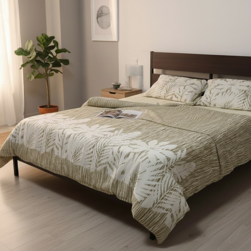 Είναι κατασκευασμένο από 100% βαμβακερό ύφασμα 144 κλωστών, με ειδική επεξεργασία για εύκολο σιδέρωμα. Είναι απαλό, υποαλλεργικό, ιδανικό για έναν υγιεινό και άνετο ύπνο.