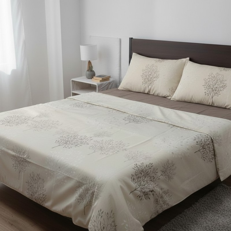 Anna Collection Σετ 4 Τεμαχίων Σεντόνια Υπέρδιπλα EARTH FOREST BEIGE 100% Cotton 220x270cm