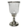 Karvounis Γυάλινο Κηροπήγιο Mε Μεταλλική Aσημί Βάση & Στεφάνι 11,5×11,5x33cm