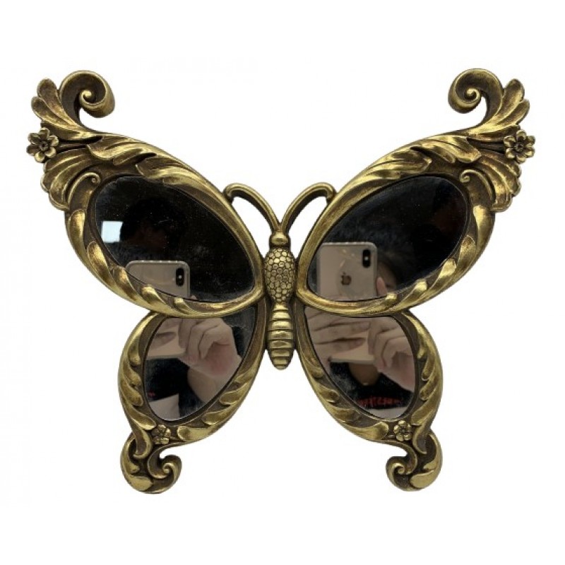Karvounis Διακοσμητική Πεταλούδα Τοίχου Polyresin Με Καθρέπτη Χρυσή 30×6.5x26cm