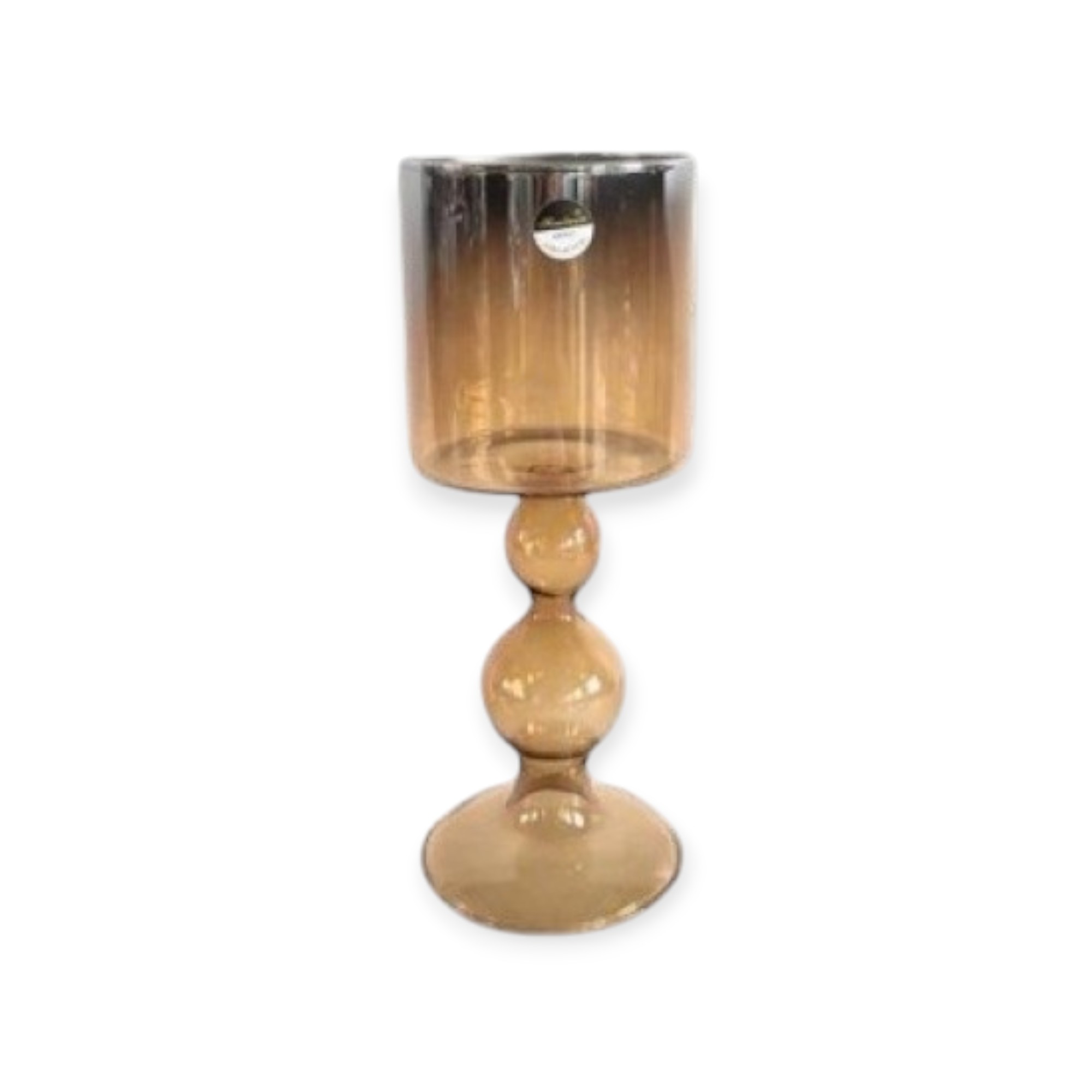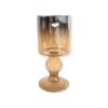 Karvounis Διακοσμητικό Γυάλινο Κηροπήγιο Ασημί/Μελί 11x11x29cm
