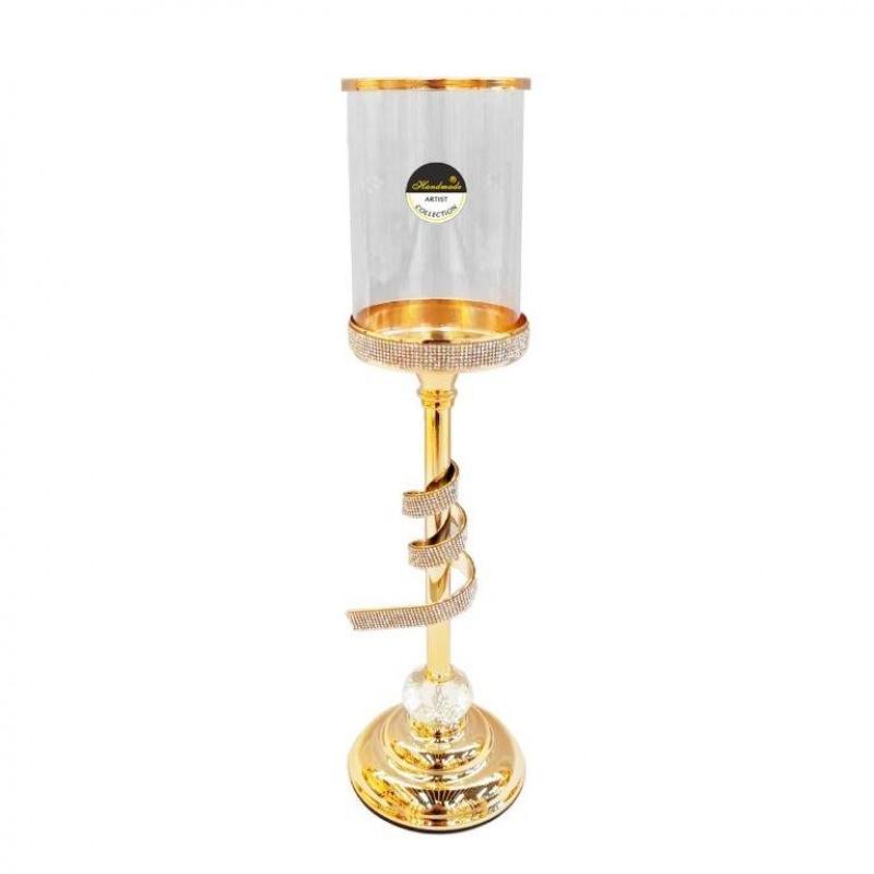 Karvounis Κηροπήγιο Μεταλλικό Γυάλινο Χρυσό 12x45cm GO787M