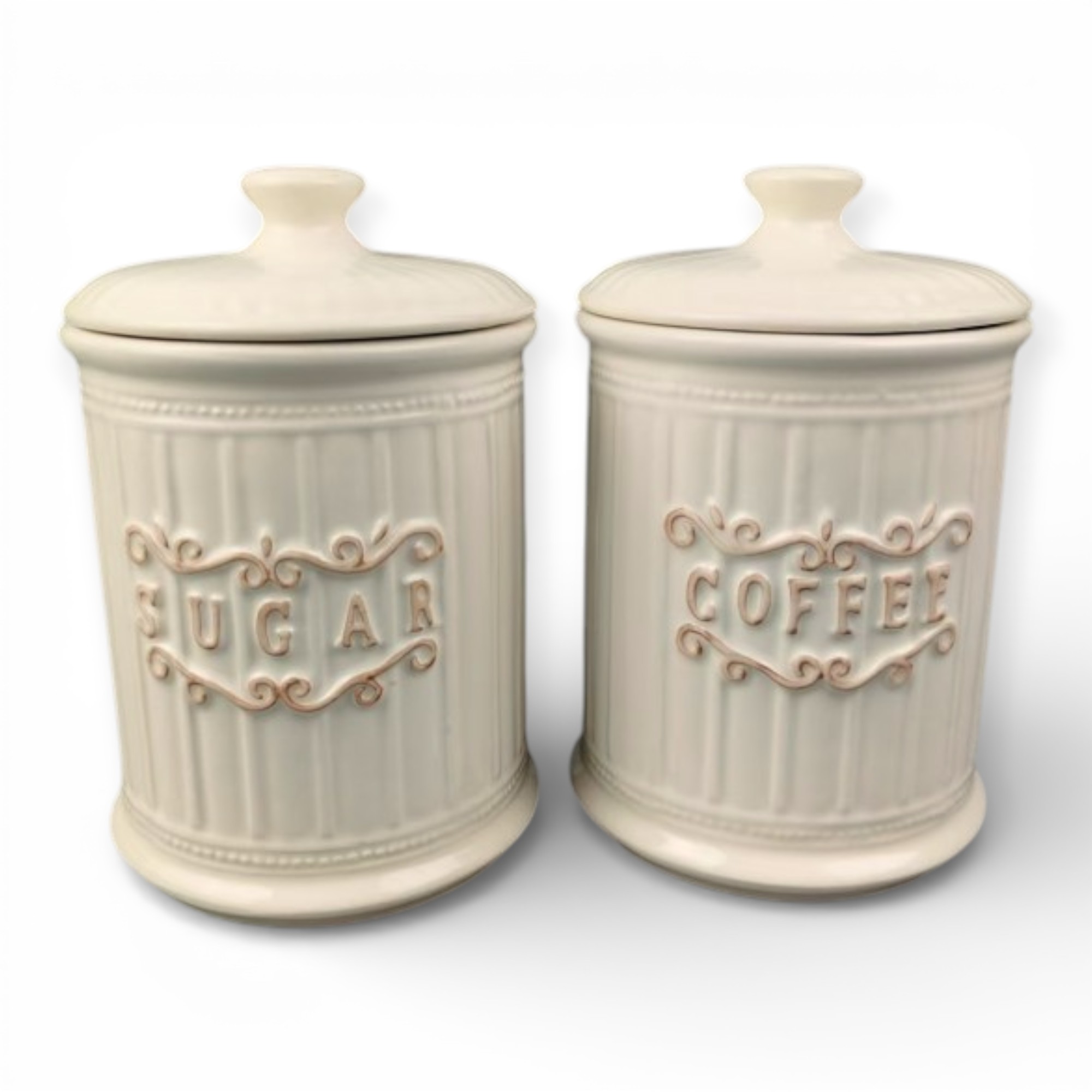 Karvounis Σετ 2 Τεμαχίων Κεραμικά Βάζα Καφέ Και Ζάχαρη Κρεμ Με Καπάκι 17cm JW190578