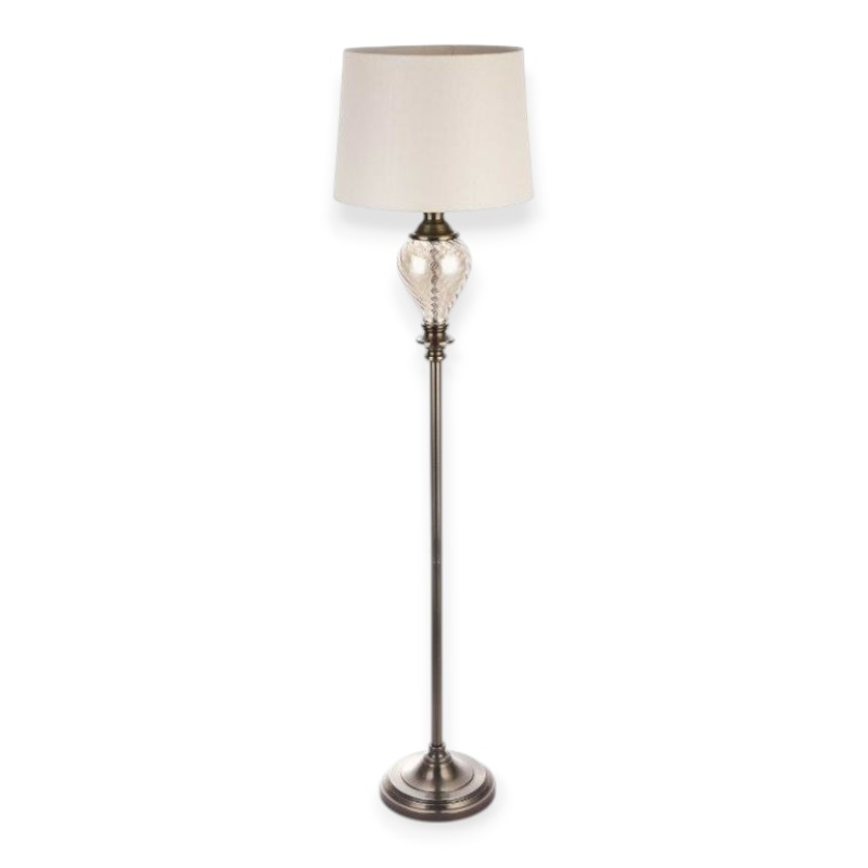 karvounis Φωτιστικό Δαπέδου Μεταλλικό Μπρονζέ Με Γυαλί Και Υφασμάτινο Καπέλο 40x162cm