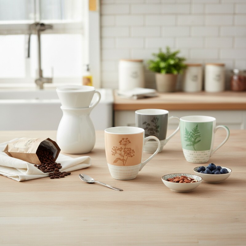 Max Home Κούπα Πορσελάνης Λευκή-Γκρι 340ml B09-2331