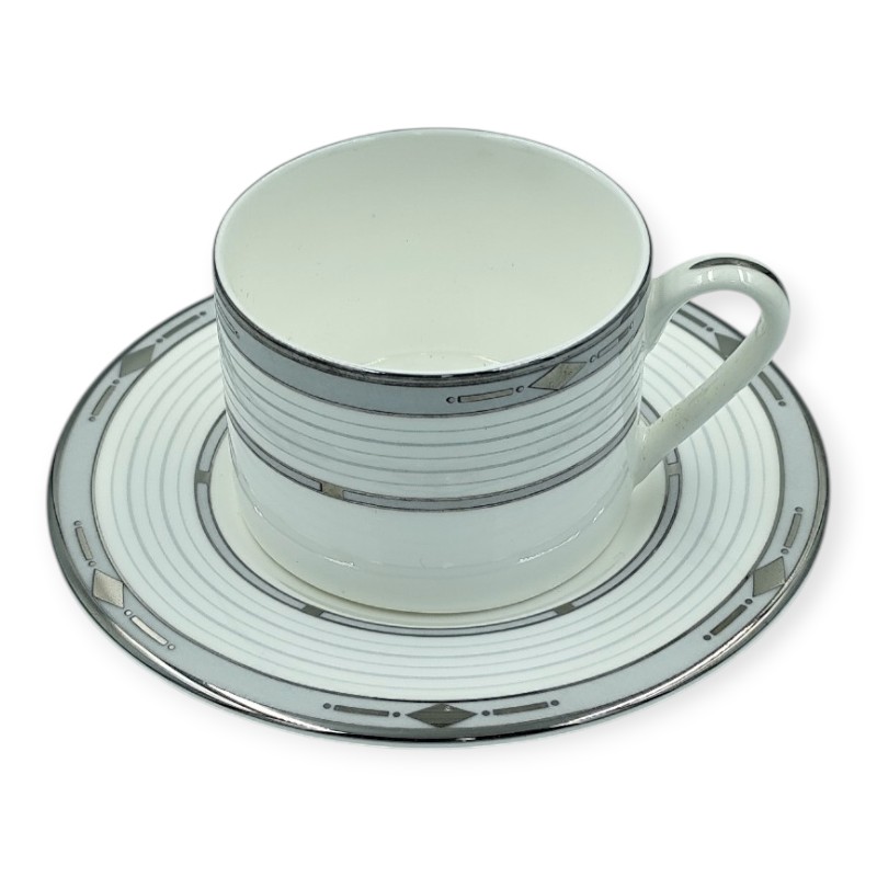Royal Fernwood Σετ Φλυτζάνια Τσαγιού 6 Τεμαχίων Πορσελάνης Λευκά Με Ασημί Ρίγα 200ml